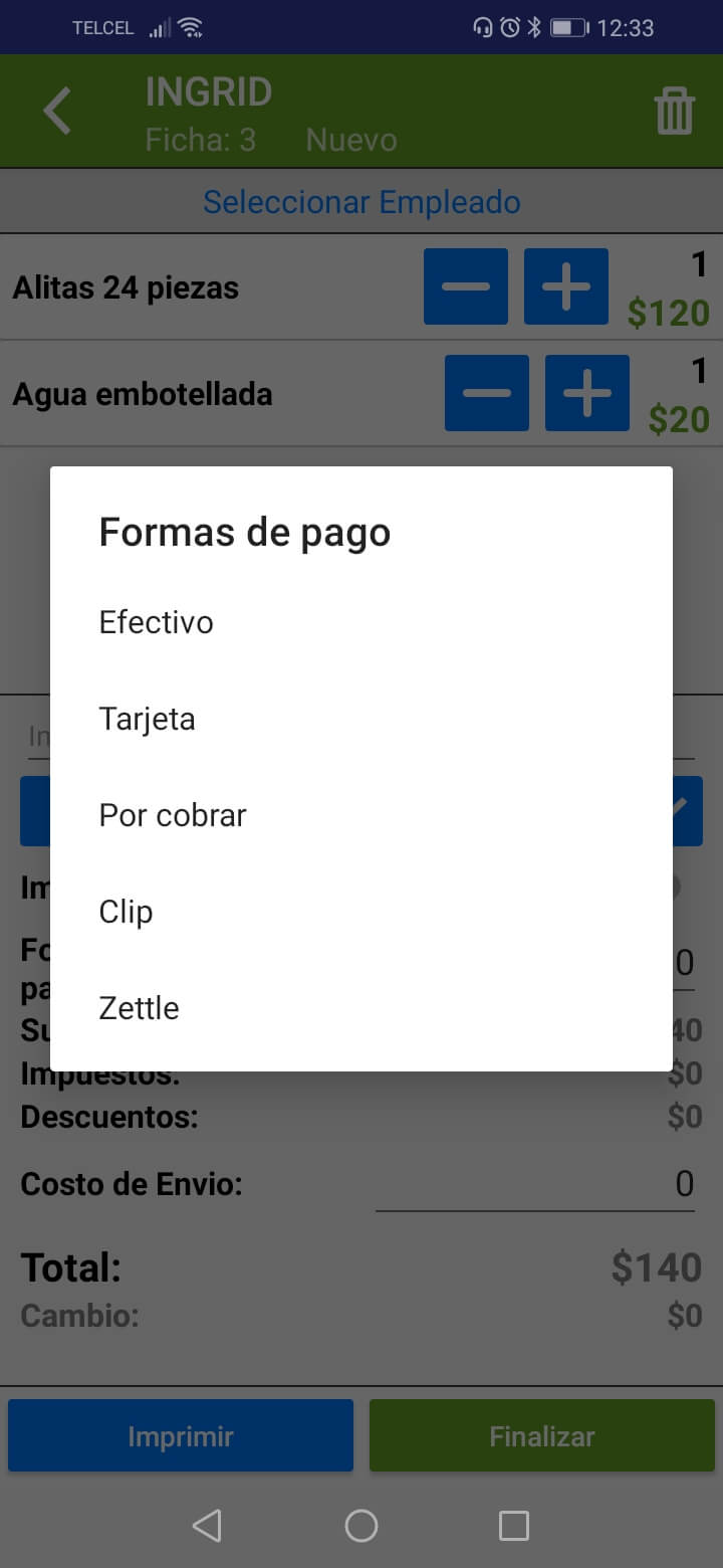 Abre la pantalla de la venta y selecciona la forma de pago.
