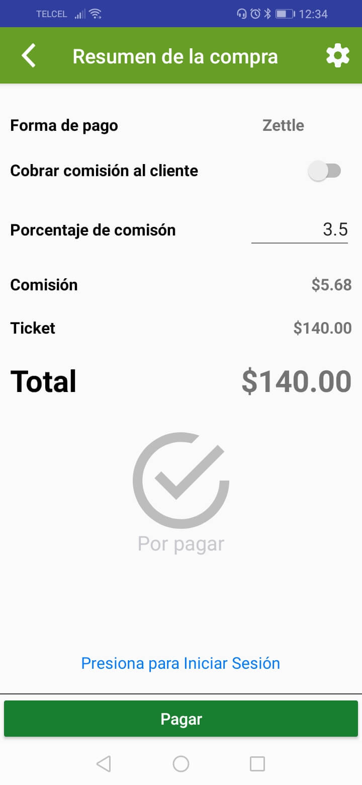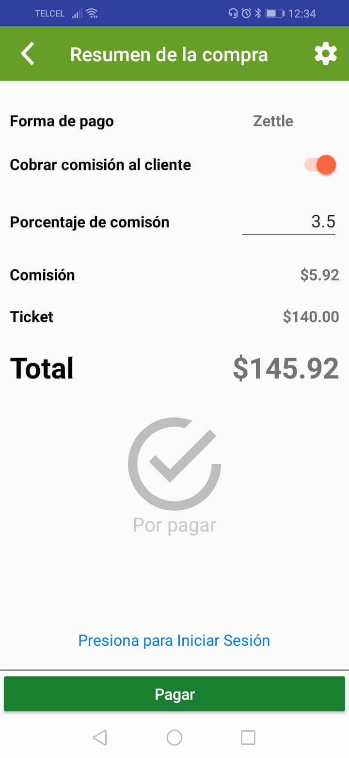 En la pantalla de pago puedes definir el porcentaje de comisión y si deseas cobrar la comisión al cliente.