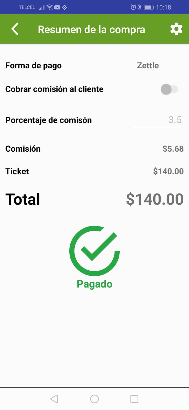 Si la transacción se realizó correctamente se mostrará la confirmación de pagado con el icono